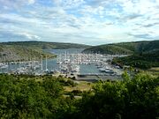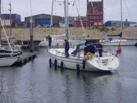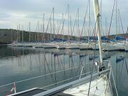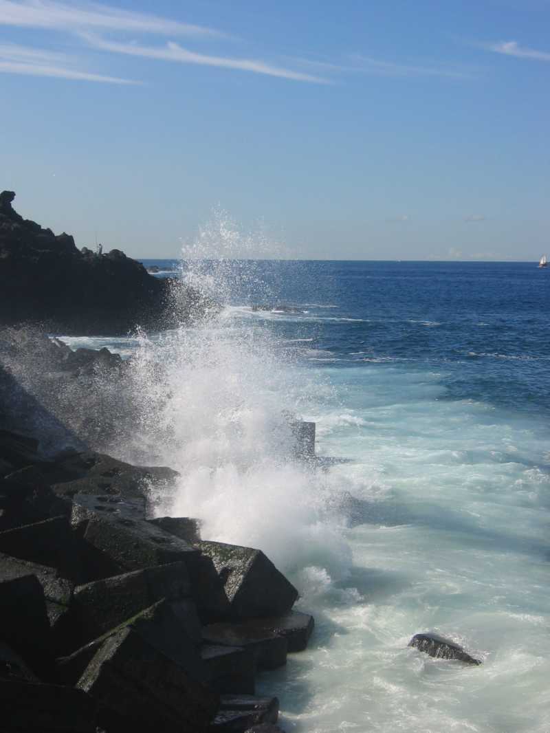Seewind: Tagsüber erzeugt das aufgehitzte Land aufsteigende Luft und damit ein thermisches Tief in Bodennähe. Die aufsteigende Luft bildet häufig Cumulus-Bewölkung. (Erstellt mit Inkscape für SkipperGuide)