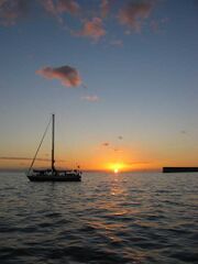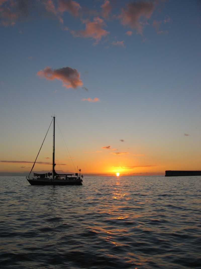 Nachts entsteht ein thermisches Hoch über dem ausgekühltem Land. Das hat schwachen Wind zum Meer hinaus zur Folge. (Erstellt mit Inkscape für SkipperGuide)