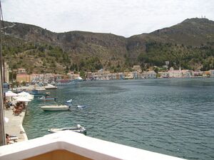 Das Städchen selbst strahlt geruhsamen griechischen Charme aus, auch wenn einige Gebäude etwas vernachlässigt ausschauen. Zugleich sieht man aber überall Renovationsbemühungen. Alles in allem ein sehr schöner Platz an dem man abseits von Massentourismus entspannen kann. Bars und Tavernen gibt es vor allem an der Süd- und Ostseite des Hafens. Die Versorgung mit Wasser und Lebensmittel ist eingeschränkt, genauso ist Treibstoff knapp. Immerhin muss Kastelorizo weitgehend vom rund 70 sm entfernten Rhodos aus versorgt werden. Es gibt allerdings eine gut nachbarschaftliche Beziehung zwischen Kastelorizo und dem knapp 4 sm entfernten türkischen [[Kas]]. Eine Fährverbindung zwischen den beiden Ortschaften ermöglicht eine weitgehend problemlose nationenübergreifende Versorgung. | |||