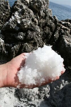 Im Sommer kann man an den Felsgumpen Meersalz ernten. | Im Sommer kann man an den Felsgumpen Meersalz ernten. | ||