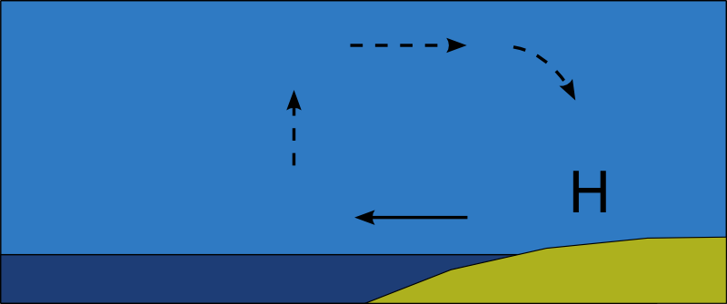 | aktuell | 00:32, 28. Mai 2006 | 800 × 335 (9 KB) | Peter (Diskussion | Beiträge) | Nachts entsteht ein thermisches Hoch über dem ausgekühltem Land. Das hat schwachen Wind zum Meer hinaus zur Folge. (Erstellt mit Inkscape für SkipperGuide) |