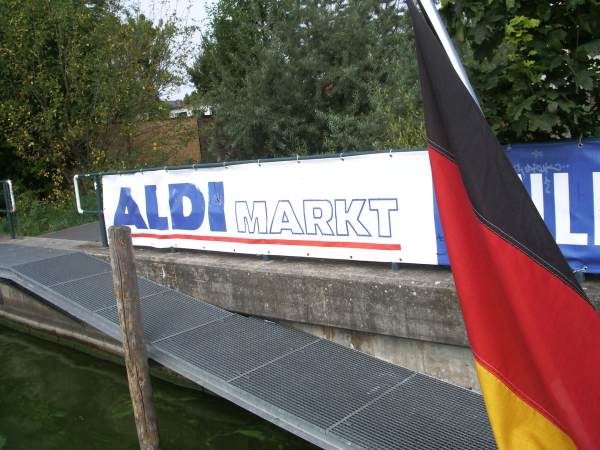Am Tiefen See bei Potsdam gibt es mehrer Marinas, die nicht weit von der Innenstadt Potsdams und dem Schloss entfernt liegen. Hier gibt es sogar einen ALDI mit eigenem Steg.