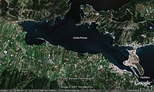 - aus dem NW Sektor gelangt man bei Ak. Dana durch eine ca. 500 m breite Durchfahrt in den Ln. Porou, einen großen, seeartigen Naturhafen, an dessen östlichem Ende Poros liegt. Am N-Ufer des Ln. Porou gibt es einige gute Ankerbuchten.