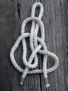 Mit gedoppelter Schnur geknüpft wird er Zaumzeugknoten oder auch Hackamore (ein gebissloses Zaumzeug) genannt.