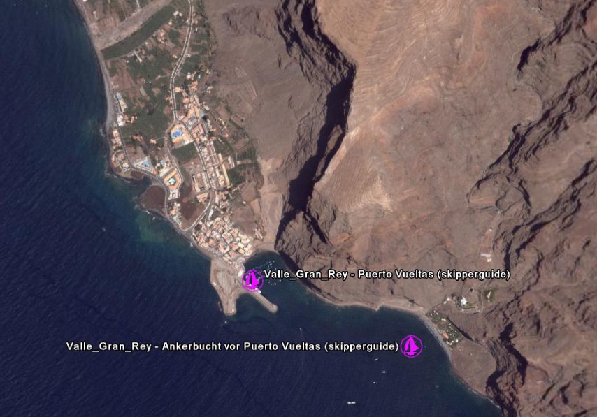 Liegemöglichkeiten in Valle Gran Rey in GoogleEarth