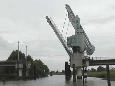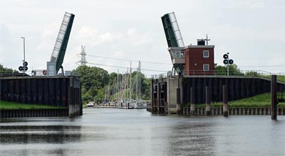 Zur Weiterfahrt aufwärts muss eine Straßen-Klappbrücke öffnen. (Telefon 04141-2317).