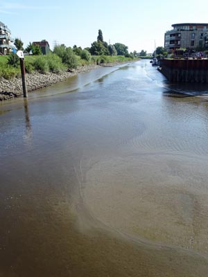 Im Stadthafen ist die Verschlickung fortgeschritten. Beim Ein- und Auslaufen sollte man sich dicht an die "Greundiek" halten.