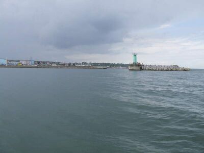 Die Ansteuerungstonne gibt den Weg in den Hafen vor. Vor der Nordmole liegen sich ändernde Sandbänke, die weiträumig umfahren werden sollten.