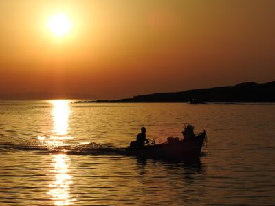 Sonnenuntergang über Antiparos in Ormos Despotiko