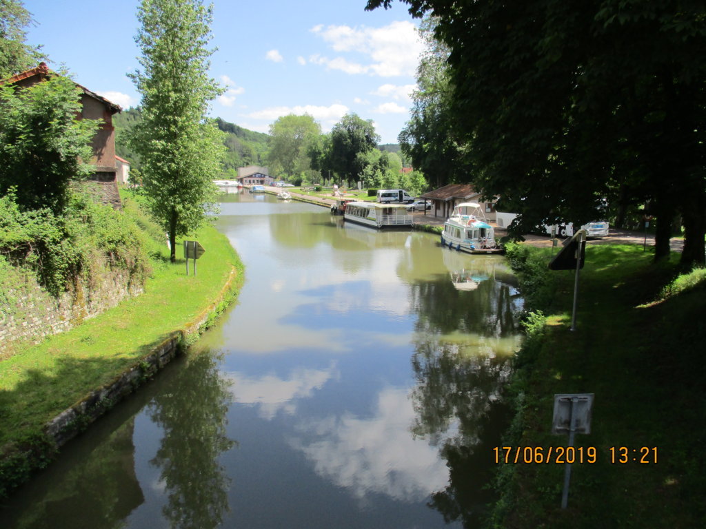 In Fontenoy-le-Château hat die Gemeinde die ganze idyllische Liegestelle an eine Charterfirma verpachtet. Die kassiert für die Gästeplätze an der Pier € 12,00, dafür wird man noch nicht einmal seinen Müll los. Den Müll kann man bei Le Boat deponieren. Sehr gute Bäckerei im Ort im gelben Haus ab 6:00 früh. Im Hafen liegt man beim Servicehaus besser und gemütlicher und ist im Schatten. Bains-les-Bains in den Intermarché-Supermarkt 6km.