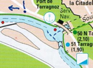 Bei der Einfahrt in den Tunnel von Besancon ist sehr genau auf die nördliche rote Boje zu achten die nur für die Ein-Ausfahrt aus dem Tunnel gilt, nicht für die Umfahrung also die große Besancon Schleife! Der Führer ist da ungenau! Den richtigen Kurs habe ich strichliniert eingezeichnet! Ich empfehle die Schleife zu fahren! Sie kommen dadurch zum schönen Hafen St. Paul! Wenn Sie weiter nach Norden wollen, müssen Sie durch den Tunnel, denn die Schleuse beim Hafen St. Paul muss per Hand bedient werden und dies ist nicht ganz einfach!!! Erfordert eine sehr sportliche Crew!