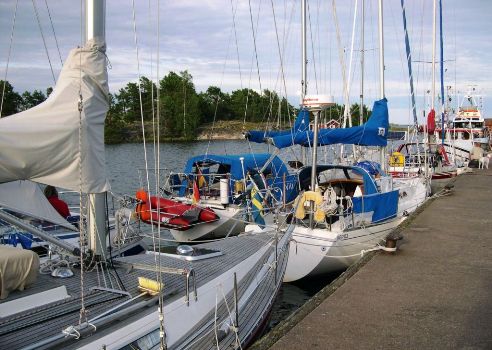 Die Ansteuerung erfolgt über die weiter nördlich gelegene Bucht unter Berücksichtigung der wenigen Fahwassertonnen. Gäste liegen hier längsseits an einer hohen Pier, die bei Westwind guten Schutz bietet. Liegegeld 50,-SEK und 40,-SEK für Strom. Es gibt kein Wasser im Hafen und nur ganz einfache Trockenklos.