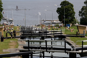 Die Schleusentreppe "Berg" ist die größte des Götakanals mit 7 Kammern und einem Hub von 18,8 m