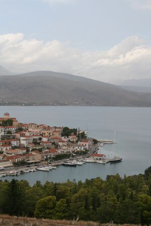 Sehr schöner Naturhafen mit malerischem Städtchen im Norden des Golfs von Korinth.