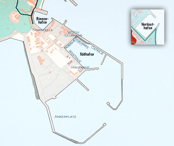 Gewöhnlich fährt man in den Vorhafen und den Südhafen, der ein Bundeshafen ist.