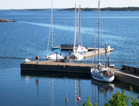 Der Hafen liegt günstig an der Route in Richtung Loftahammar und knapp östlich von Västervik. Bei der Einsteuerung von Süden unbedingt die einzelne grüne Tonne an StB lassen, sonst rummst es gewaltig. Der südliche Schwimmsteg ist mit Grundgeschirr (unangenehm schmutzige Leinen) versehen. Von der ehemaligen Lotsenstation, die jetzt ein Restaurant ist, hat man einen herrlichen Blick über die Schären. In 2005 wurde an dem Haus neben dem Hafen eine Terrasse errichtet, auf der man Kleinigkeiten aus dem Kiosk zu sich nehmen kann. |