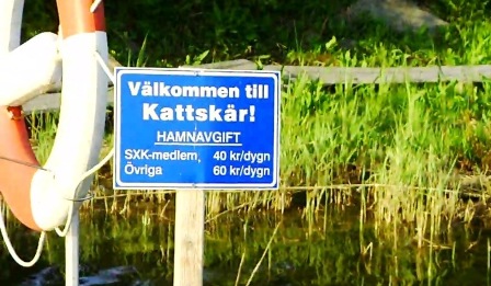 Versteckter Anleger außerhalb von Sundsvall. Die Zufahrt ist etwas schwierig, weil sie durch einen kleinen Kanal mit ebenso kleinen Seezeichen führt. Die ersten beiden kleinen Spierentonnen an der Einfahrt müssen in der Mitte durchfahren werden. Die Tiefe in der Zufahrt beträgt tatsächlich nur 1,9 m! In dem Binnensee ist es dann an dem Anleger wieder etwa 3 m tief. Liegegeld (in 2011) siehe Bild, kein Wasser, kein Strom, Trockenklo. Aber herrlich ruhig.