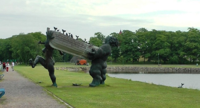 Auf dem Weg in den Ort trifft man auf die Skulpturen von Suur Tõll und seiner Frau Piret, den sagenhaften Helden von Saaremaa.