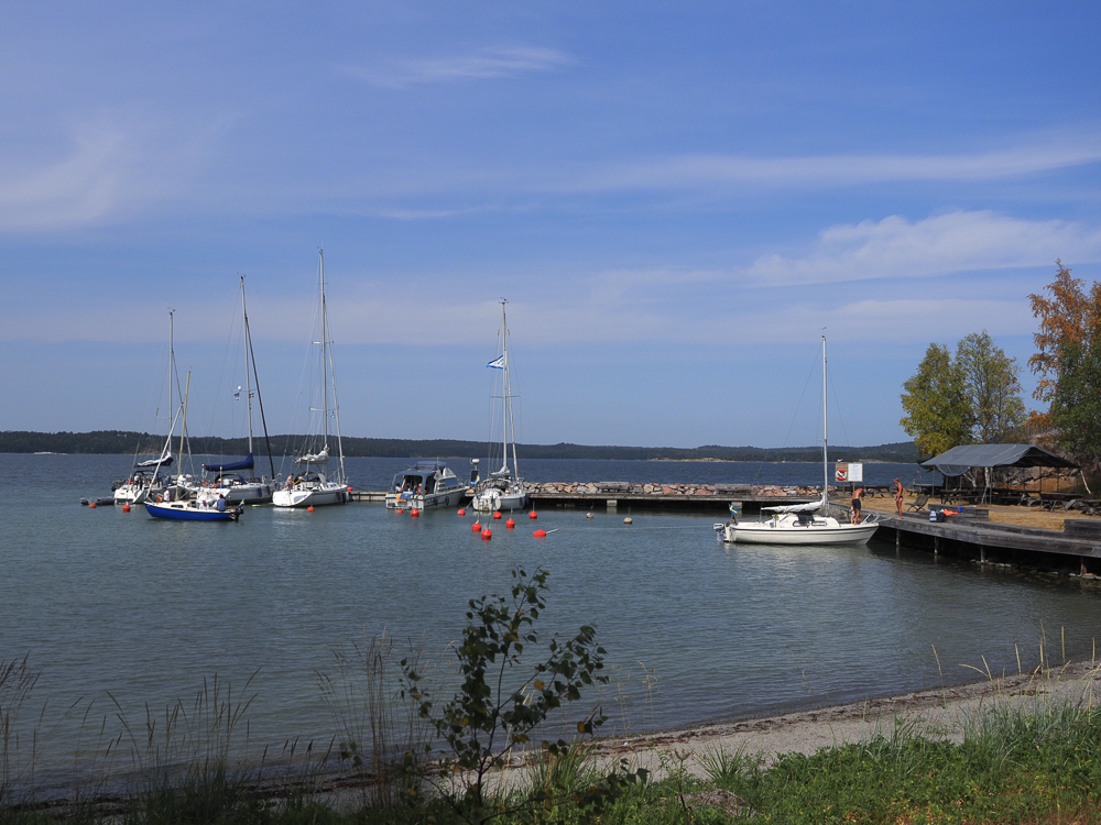 Das ist der Uthamn der Nynäshamns Segelsällskap. Der Hafen ist sehr offen gegen Nord- und Westwinde, ansonsten bietet er erstklassigen Schutz. Man liegt an fester Mole oder am Schwimmsteg vor Heckbojen.