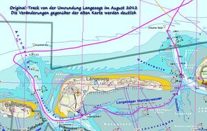 Wie im Kapitel "Wege von und nach Langeoog" beschrieben kann man als Alternative erwägen, den Priel Otzumer Balje (zwischen Spiekeroog und Langeoog) zu nehmen und über das Langeooger Wattfahrwasser zum Hafen zu gelangen. Das sog. Wattenhoch hat derzeit (August 2012) bei HW 1,85 m Wassertiefe. Mit 1,40 m bin ich dort 1,5 Stunde vor HW dort problemlos durchgekommen.