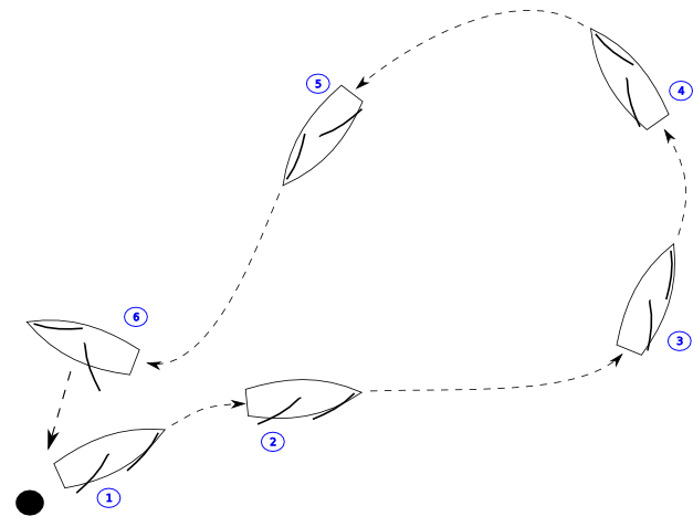 2. Durch den Wind drehen, das Vorsegel back stehen lassen