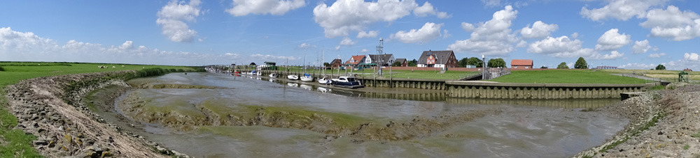 Die Liegeplätze befinden sich an der Kante seitlich des Priels und sind verschlickt.