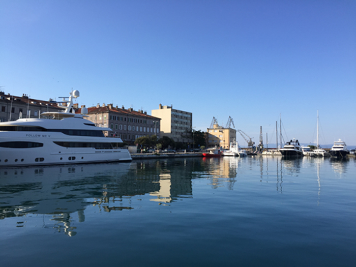 Der Hafen besitzt mehrere Terminals für Mineralöl, Stückgut, Sperrgut und Container, sowie einen Passagierterminal für Fährverkehr. Bild vom Hafenamt in Rijeka.