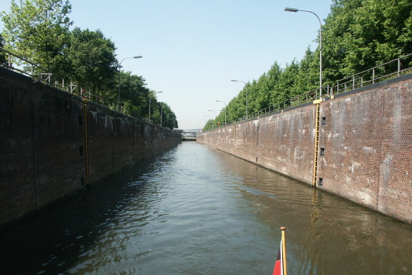 km 12,5: Wartestelle der Schleuse Mülheim Unterwasser und