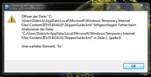 Plötzlich gibt es hier einen Fehler! Syntax Error wid im Google Earth angeeigt.