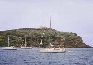 Das Kap Sounion ist der südlichste Zipfel der Attikaküste. Auf ihm ragen weithin sichtbar die Reste eines Tempels, dem Meeresgott Poseidon gewidmet. Gleich westlich davon befindet sich diese Einbuchtung, die gerne von Sportbooten aufgesucht wird. Unter anderem stellt sie einen guten Startpunkt für den Sprung in die Kykladen oder nach Norden in Richtung Euböa dar.
