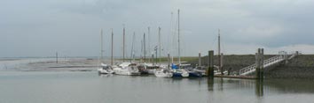 In das Fahrwasser, welches wie bei den Ostfriesischen Inseln naturgegeben um die W-Seite führt, läuft man mit etwa 160° ein und folgt diesem im Linksbogen.