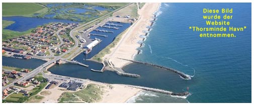 Die Zufahrt von der Nordsee führt direkt zwischen die schützenden Hafenmolen, die am Kopf gut sichtbare Befeuerung tragen.