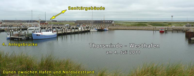 Man läuft direkt auf ein Entwässungssperrwerk zu, auf dem auch der Hafenmeister sein Büro hat. Kurz vorher an Stb. biegt man in den Staatshafen ab. Durch einen kleinen "Schlenker" der Hafenführung ist dieser sehr ruhig. Er ist total auf Fischerei ausgerichtet. Dazu ragen 4 Brücken in das Hafenbecken hinein, an denen zahlreiche Kutter Platz haben.