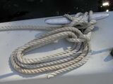 | | |Das in Buchten aufgeschossene lose Ende kann man direkt an der Klampe befestigen, indem man die von der Klampe kommende Part innen durch die Augen führt, zwei- bis dreimal verdrillt... | ||