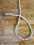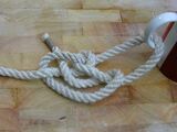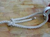 |Ein großer Vorteil ist, dass man das Ende schon jetzt - als allererstes nach dem Annehmen der Leine - durch einen Befestigungsgegenstand (z. B. Ring oder Leitersprosse) führen kann. | |||