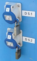 Die Steckdosen sind alle, bis auf eine (für Gastlieger) mit Vorhängeschlössern gesichert.