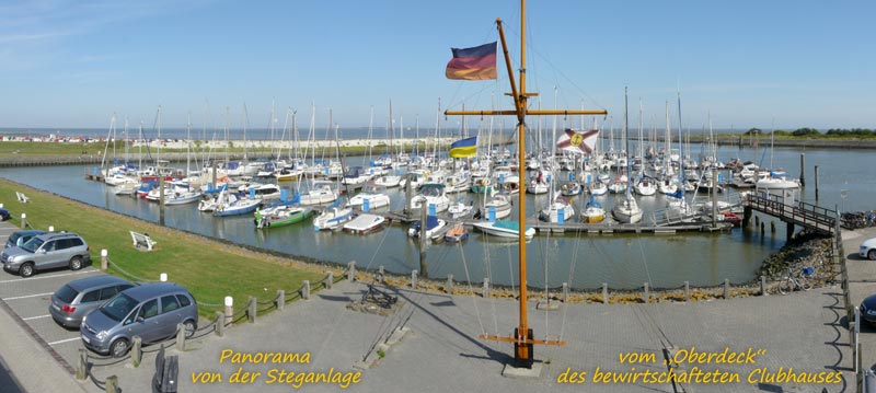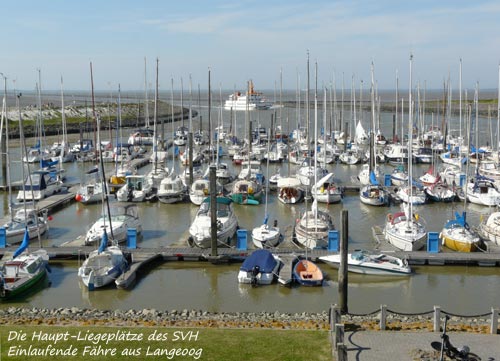Am Anfang das Hafens, gegenüber dem Fähranleger, liegt die Pontonanlage des [Segelvereins Harlebucht ] mit etwa 190 Liegeplätzen.