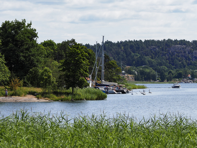 Die Umgebung ist außerordentlich hübsch. Auf der einen Seite hohe Wälder, auf der anderen ein parkartiges Gelände, an dessen Rand der Hafen liegt. Der Park gehört zum Schloss Tyresö, gebaut von Graf Oxenstierna. | |||