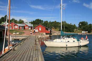 Gästehafen in der Gemeinde Brändö im Osten der Aland-Inseln. Festmachen zwischen Boje und Steg. Die Nordostseite ist dem Schwell der mehrmals täglich eintreffenden Fähren ausgesetzt. Im Gegensatz zu den Angaben im deutschen Hafenhandbuch "Ostsee II" hat der Hafen keine Pontonbrücken, sondern massive Holzstege (siehe Fotos). Es gibt eine mit weißen Steinen markierte Wanderroute über die Insel, die schärentypisch teilweise gute Schuhe und etwas Kletterei verlangt, aber sehr malerisch ist.