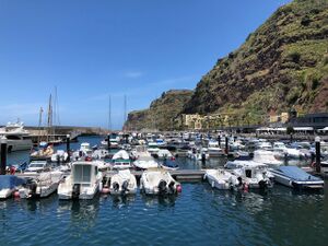 Hafeneinfahrt Calheta aus dem Hafen fotografiert.