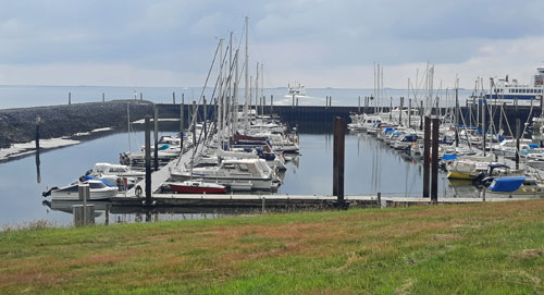 Es gibt hier regen Fährverkehr. Mit der Begegnung von Fähren muss deshalb gerechnet werden. Sie legen links der Hafeneinfahrt an.