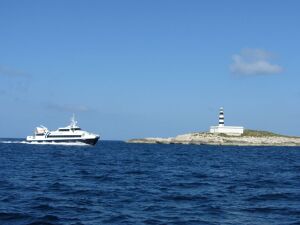 Schnellfähre im Es Freu Grande zwischen Ibiza und Formentera