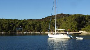 [[Image:20170925_Korcula_3.JPG|thumb|300px|Ankerplatz vor der Klosterinsel Badija]]