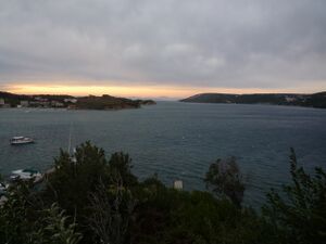 :Langgestreckte besiedelte Bucht mit geschützten Ankermöglichkeiten und ACI Marina. (Tip: Muscheln im Fischrestaurant "Gondola", an der Westseite mit eigenem Anlegesteg; Restaurant Maestral, ebenfalls Westseite, hinter der Hauptstraße landeinwärts; Restaurant "Bili As", Nord-West Seite) | |||