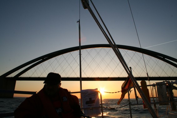 Im Sund herrscht je nach Windrichtung manchmal ein beachtlicher Strom, besonders in den Flachwassergebieten östlich der Brücke. Genau hier muß man sich aber mit größerem Tiefgang ziemlich genau an die ausgetonnte Rinne halten. Erhöhte Aufmerksamkeit ist also geboten, vor allem, wenn man auf Am-Wind-Kurs hier reingeht. Richtig kritisch wird es, wenn mehrere Tage starker Ost- oder Westwind gestanden hat, und dann die Windrichtung wechselt: Wind gegen Strom erzeugt dann hier Verhältnisse manchmal schlimmer als in der Elbmündung. Wir haben unter solchen Bedingungen schon mal die Maschine mitdrehen lassen müssen, weil sonst keine Ruderwirkung mehr da gewesen wäre.