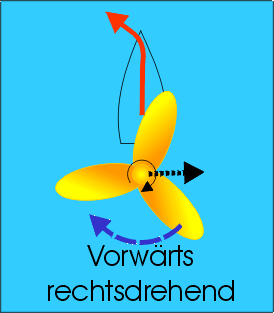 <u>Rechts</u>drehende Schraube bei <u>Vor</u>wärtsfahrt: <u>Rechte</u> Hand, Handfläche nach oben (<u>Vor</u>hand) | |||