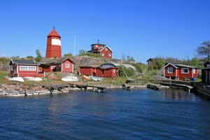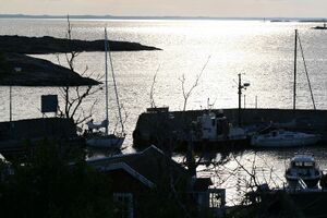 Ein winziger, absolut "schräger" Hafen weit draußen in der Ansteuerung von Oxelösund. Er liegt auf dem größten Felsen einer kleinen Schärengruppe und war früher eine Lotsenstation. Die Häuser auf der Insel waren die Wohnhäuser der Lotsen und gehören heute ausschließlich deren Erben, ebenso wie die zahlreichen Motorboote in dem winzigen Hafen.