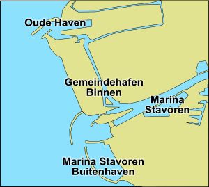Am Kanal hinter der Schleuse liegt die ältere "Schwester" der Marina Stavoren Buitenhaven. Tadellose Versorgung. Für Passanten aber recht ungeeignet, da es bis zum Ort ein längerer Fußmarsch ist (circa 15 Minuten).