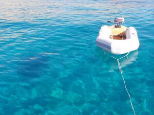 Der Törnführer 'Griechenland 3' warnt vor einem Felsen mit Wassertiefe 2m. Dieser Felsen konnte aktuell nicht aufgefunden werden. Es ist anzunehmen, dass die Bucht zunehmend versandet.