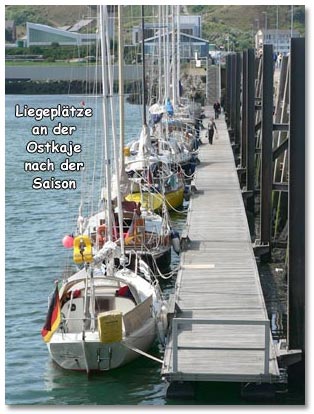 Normale größere Sportboote finden einen guten Platz in kleinen Päckchen an der Nordkaje (Aufstieg per Leiter).